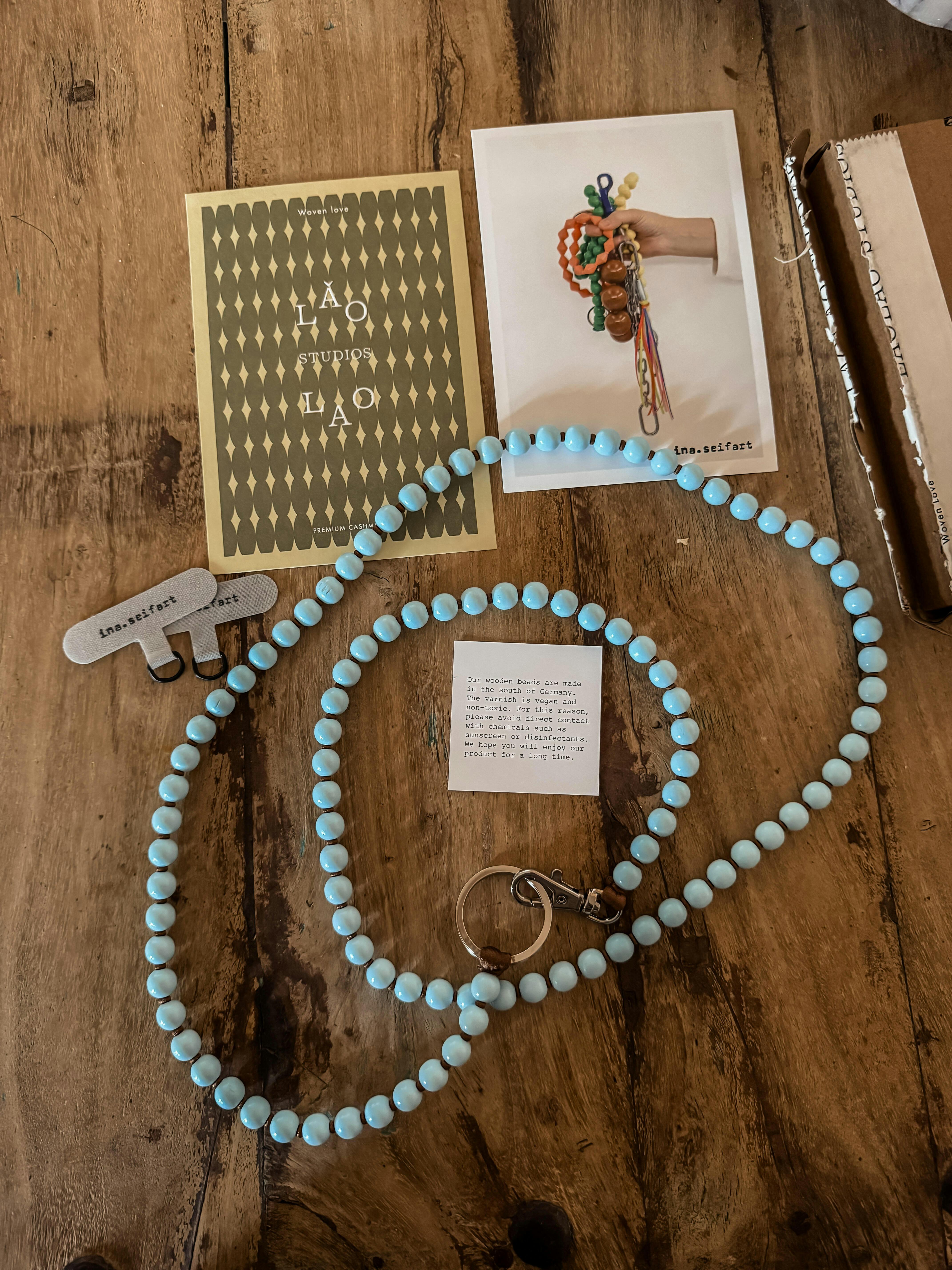 Phone Necklace - Pastel Blue/ Mocca